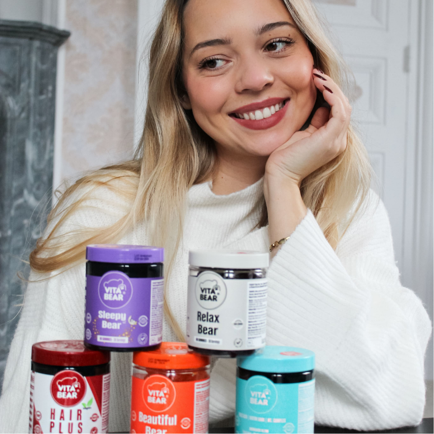 Les gummies Vita Bear sont formulés à partir d’ingrédients 100 % naturels, comprenant des vitamines essentielles, des minéraux et des extraits de plantes adaptés à chaque bénéfice (par exemple : biotine pour les cheveux, mélatonine pour le sommeil). Chaque produit a une composition ciblée selon son objectif.